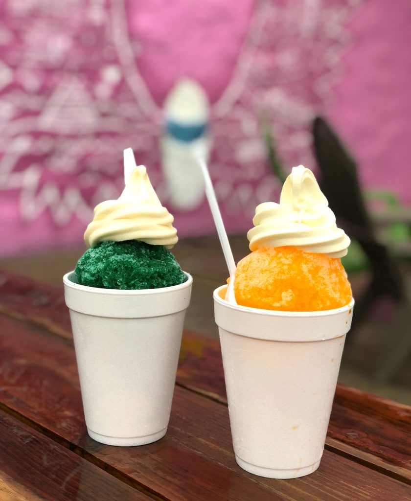 When you order, ask for your snow cone "supreme" and you'll get it layered with vanilla soft serve ice cream. It sounds kind of weird, but trust me, the soft serve takes the basic snow cone and transforms it into a local delicacy.