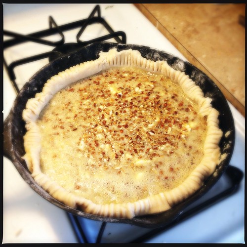 If you realize mid-way through the recipe that you don't have a pie pan, you can always use a cast iron skillet.