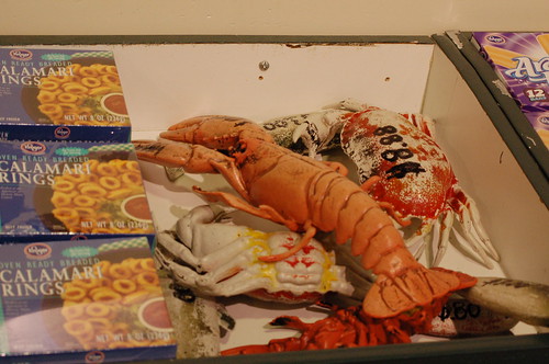 I'm an adult. I have to grocery shop with real money for real food. But I couldn't resist filling up a cart with giant plastic lobsters and cheese and empty boxes of ice cream.