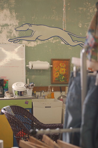 The Thigh High Jeans studio in the old Greyhound building downtown has a few reminders of what used to occupy the space.
