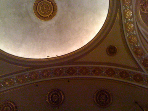 This is the ceiling of the Orpheum Theatre. I stealthity snapped the picture before the lights went down at Saturday's performance by Beatles tribute group Rain.