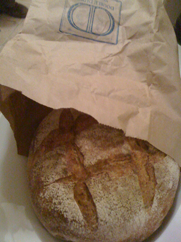 A loaf of delicious, homemade bread. Yum!