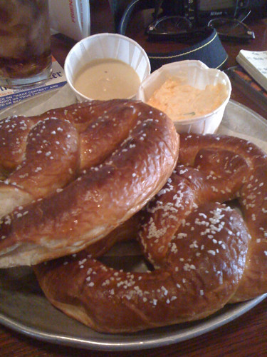 Best. Soft. Pretzels. Ever. I can't eat them anywhere else now. Cream cheese is my fave dipping sauce. Try queso too. And honey mustard :-)