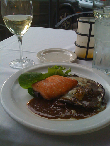 I had the pan-seared salmon with a Portobello mushroom and bleu cheese.