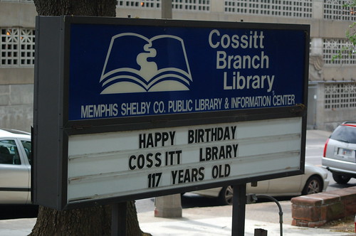 The Cossitt Library was built downtown at the corner of Front and Monroe in 1893. The original red sandstone building is still partially in use, though the front of the building (and the turrets) were torn down in the 1950s. Memphis Memories has some great pictures of the library over the years.