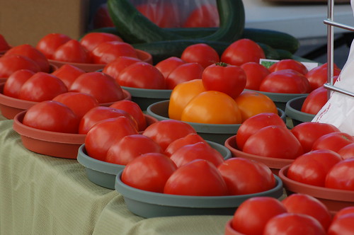 The Memphis Botanic Garden's farmers market has vendors set up under tents on a lawn near their plant shop. On a recent visit, vendors were selling organic meat out of freezer trucks (ground sausage, $4.50), tomatoes, cut flowers, Italian Ice, bread, and McCarter's Coffee. Since it's a botanic garden farmer's market, they've also got a ton of hanging, potted and seedling plants for sale.