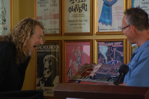 Robert Plant is totally excited about the piece of art that the Blues Foundation presented to him at the Orpheum this afternoon. He's also getting a star on the sidewalk outside of the theater. Today is now officially Robert Plant Day. Yay!