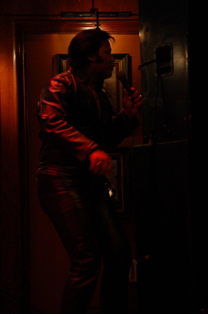 Most of Saturday night's Elvises chose to impersonate the late 1960s Elvis, to varying degrees of success. The ones that did the best were the contestants that sang songs concurrent to the period of their costumes. Because yes, there were costumes. Elaborate costumes. There were several white jumpsuits, a black velvet suit, leather pants, and one man who completely won my heart with his slightly pirate-y bedazzled, red puffy-sleeved jumpsuit.