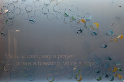 Many of the works are interactive, providing distraction for the hospital's young patients. There's a giant, I-SPY inspired mural (with a list of things to find) in the corner of a waiting room, large landscapes made of crayons and a wall lined with tubes where patients, family and visitors can place sheets of paper with their hopes and prayers.