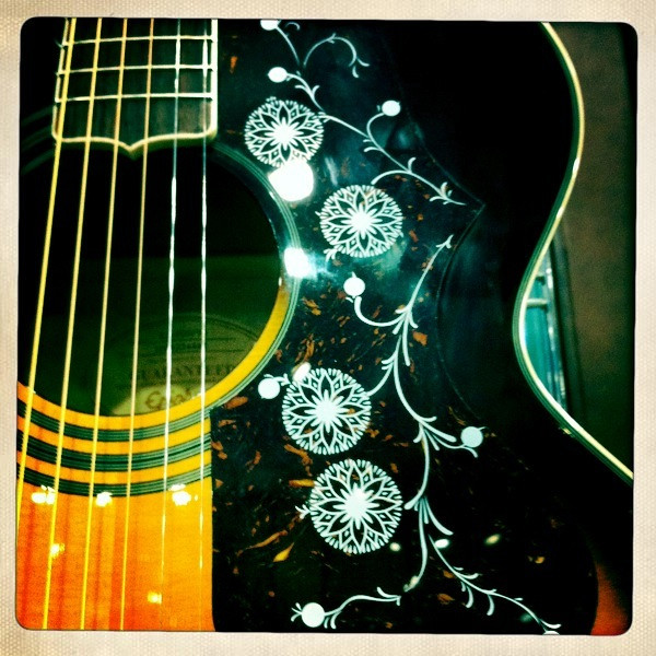 An extremely pretty acoustic guitar at the Gibson Guitar factory shop in Memphis.