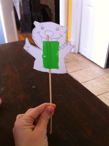 Tape the groundhog to your stick. I chose some festive green duct tape, but just about any kind will do.