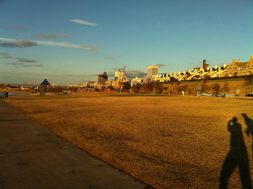 We ran up the hill on Union Ave., past my office, towards the Peabody. We ran down Third to Beale, chatting about the history of Beale Street and the embarrassment of falling while giving a running tour. We went to the Orpheum, then down South Main, past Earnestine & Hazels and the Civil Rights Museum. We ran down Tennessee Street and came out in the park overlooking the river.
