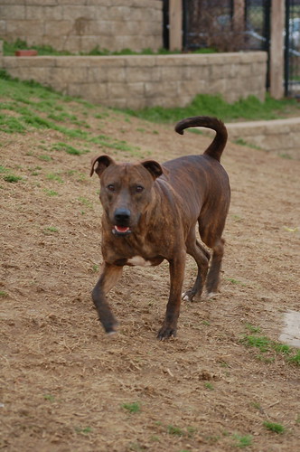 Once an animal comes into the Humane Society, it doesn't leave until it's adopted into a good home. Some of the dogs have been there for years, others for just a few weeks. Most of them are adult dogs, and all of them have some level of training (all of the ones I walked yesterday responded well to "sit" when treats were involved).