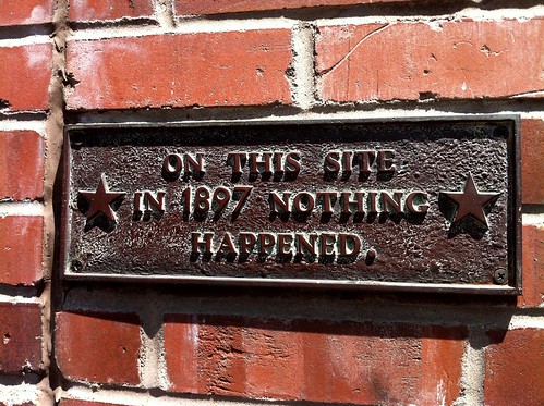 Seems from where I sit that it says, "On this SITE in 1897, nothing happened", which is even more astounding.