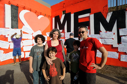 Stacey Greenberg and Waren Oster with their kids Satchel and Jiro and friend Cole Zaslove at the I Love Memphis mural launch party. Stacey is a fellow blogger - she writes a local restaurant blog called Dining with Monkeys and is the woman behind Fertile Ground Zine.