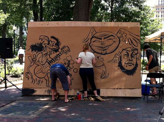 The weapon of choice, paint brushes dipped in black ink. The participants, local artists.