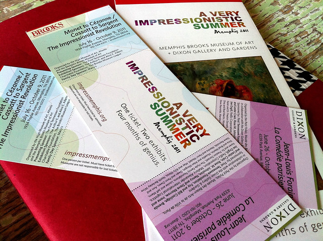 These tickets are good for admission to the Brooks Museum's "The Impressionist Revolution" exhibit and the fantastic "Jean Louis Forain: La Comedie parisien" exhibit at the Dixon Gallery and Gardens. Both shows are up until October 9th, so you've got plenty of time to check them out.