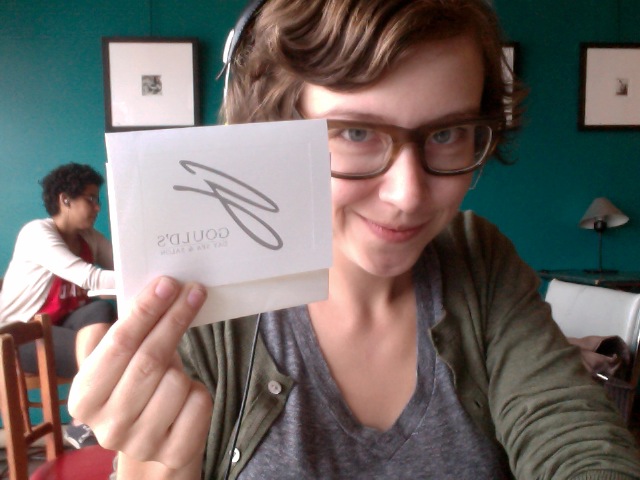Now, I've got a gift certificate for one shampoo, cut and style from Monica at Gould's Salon at the Peabody for one of you.