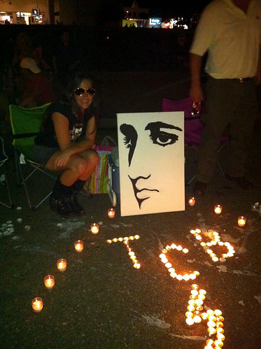 Melanie Headley is a lawyer and volunteer DJ at WEVL (her show, "River City Reveille", comes on on Thursday mornings at 6 a.m., right before my show). Here she is, posing with her shrine at the Elvis Week candle light vigil.