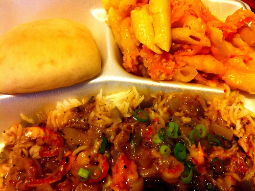 The etouffee was pretty light. It had a little bit of kick to it, but wasn't so spicy that it required multiple glasses of water. The long-gran rice was perfectly cooked, and I liked the green onions. The portions are large enough to set aside some for leftovers, but you might struggle not to eat all of it in one sitting.