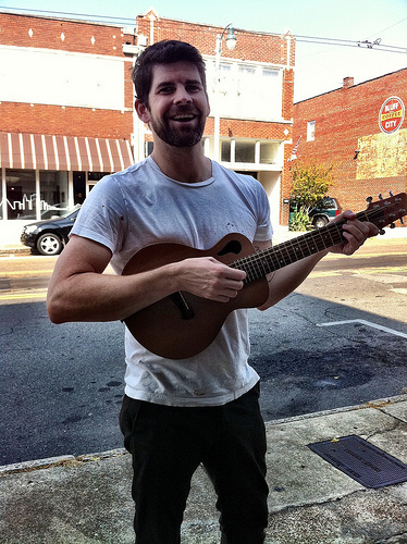 I ran into musician Caleb Sweazy on South Main while he was taking a break from his job at the Folk Alliance to play this tiny guitar. You can find out more about Caleb and his music here.