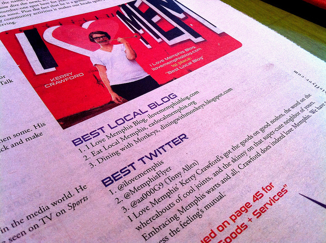 Because of your awesome voting generosity, I Love Memphis took first place in both the Best Blog and Best Twitter categories for the second year in a row. I couldn't be more excited or appreciative. I really wish I could buy every single one of you a frosty cold Ghost River.