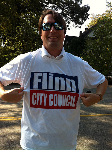 City councilman Shea Flinn was campaigning hard outside of the polling station at Trinity Methodist Church in Midtown during the municipal elections. You can follow him on Twitter @flinnshady.