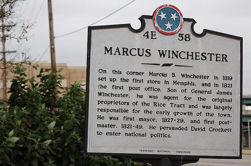 Marcus Winchester's marker sits at the site of his store, at the corner of Front and Jackson downtown. If you're looking for it, it's on the lawn of the MLGW substation.