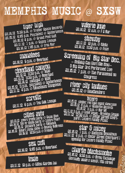 If that's not enough, visit the Memphis Music Foundation's booth during the SXSW music trade show, where Cameron Mann and his crew can give you more details about the Memphis music scene.