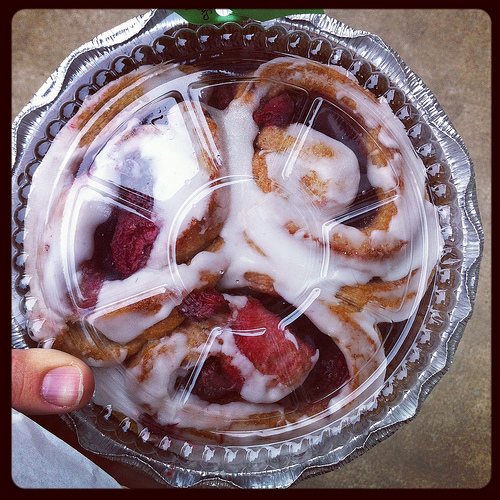 These strawberry sticky buns are from Shoaf's Loaf, and you can get them at the Memphis Farmer's Market. Pro tip: they go really well with McCarter's Coffee. Just a suggestion.