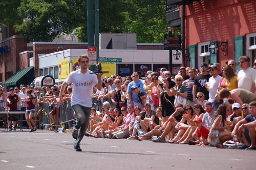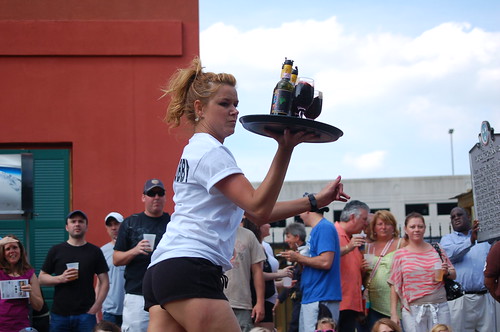 Between the events, which also include a grape stomping contest, teams mill around Beale in their matching t-shirts and cheer on their co-workers and friends from other restaurants. There's an overwhelming sense of friendly competition and booze-fueled congeniality to the whole event.