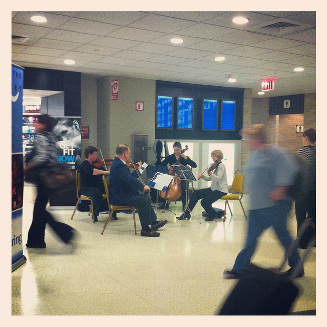 (Those are members of the Memphis Symphony Orchestra playing at Memphis International Airport on Friday, March 30.)
