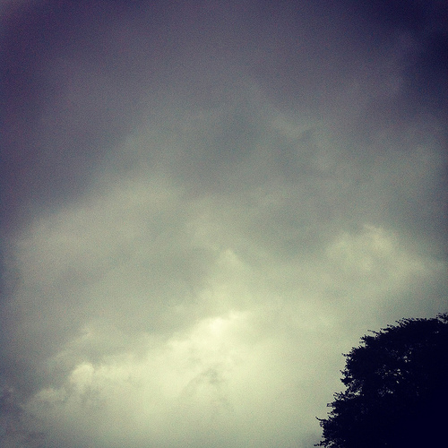 The sky dims (and if it's a really good storm, turns a little bit green), the rain comes down at weird angles, the wind blows and the temperature and humidity drop back down to reasonable levels, at least for a few minutes.