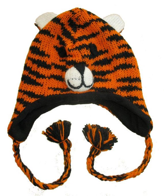 2. An impressive hand knit wool Tiger hat ($20) from Driggs100.