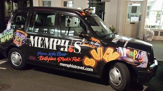 My colleague Jonathan is there to help promote the big opening and he snapped a few photos of the taxis in London. A whole fleet of them is decked out in Memphis logos. That's pretty awesome.