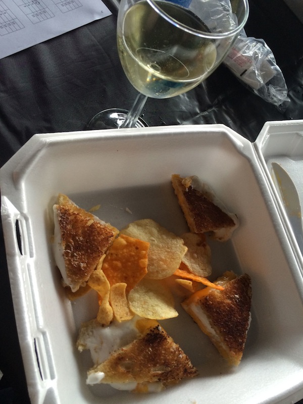 Grilled cheese with marshmallow cream served with Doritos, Fritos, and potato chips. And wine. This felt distinctly like a bribe for the judges, and I was ok with it.