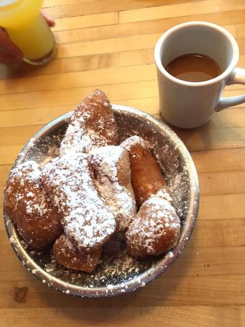 Next, the beignets (listed as"beniets" on the menu) which are a little more dense than the NOLA-style beignets I've had before, but were still great. I mean, it's fried dough and powdered sugar.