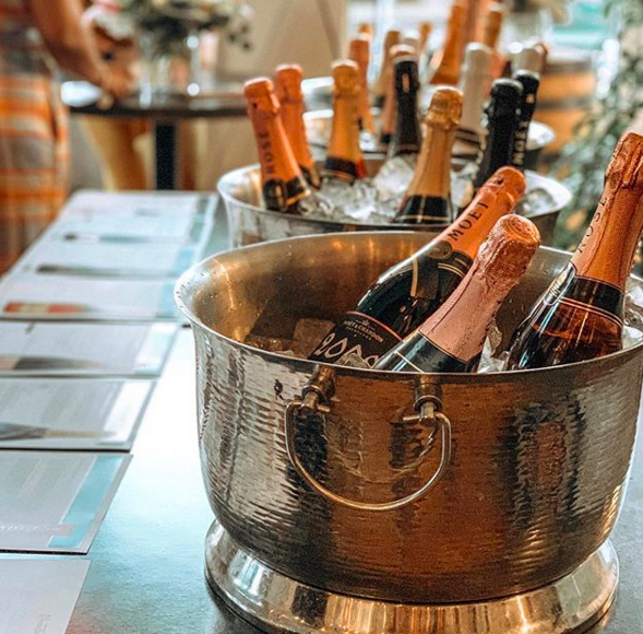 General admission is $75, which pays for the experience and the music, and includes a split (small bottle with 1-2 glasses) of Champagne and a souvenir tasting goblet. VIP admission is $160 and includes a regular-sized bottle of Moet and the goblet. Food will be sold a la carte in small plates ($5-$15 range) as will additional beverages.