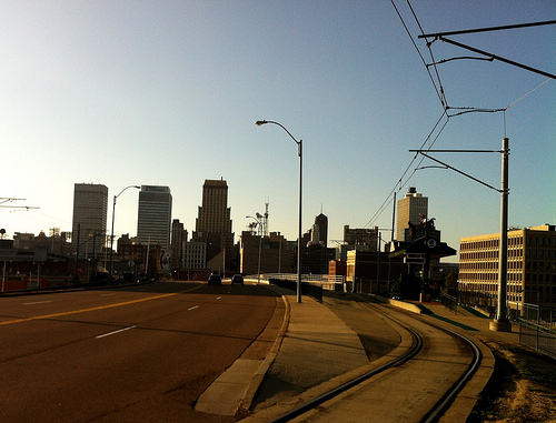 When Madison crosses over I-240, the street turns perfect. There's a nice panoramic view of the back of downtown, the trolley tracks don't interfere with traffic and the air always smells like Wonder Bread. The view is especially pretty in the mornings, when the light from the rising sun bounces off of the buildings.