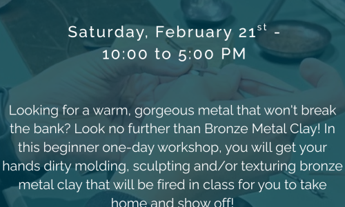 In this beginner one-day workshop, you will get your hands dirty molding, sculpting and/or texturing bronze metal clay that will be fired in class for you to take home and show off!