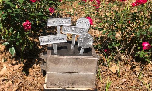 Liven up your garden with personalized garden markers. The garden markers can be customized to label specific plants or can be left blank to label with a marker or sticker each season. In this class participants will: design two to three garden markers and make 2 part green sand molds. This class is focused on making multiple castings, so students will be making multiple molds as each mold is only good for a single casting.
