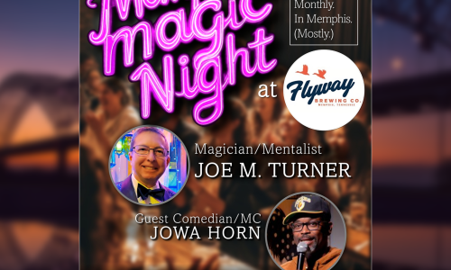 Enjoy laughter, legerdemain, and your choice of libations as you are amazed and amused by fun and enthusiastic performers! Joe M. Turner is a recent Atlanta transplant who has performed in 50 countries, in theatres, on cruises, and on television. He has performed at the Hollywood Magic Castle, the Chicago Magic Lounge, Monday Night Magic in New York, the London Palladium, and produced Atlanta Magic Night for eleven years. Jowa Horn is a veteran Memphis comedian with multiple appearances at mics and shows around the city. He is making his Memphis Magic Night debut.