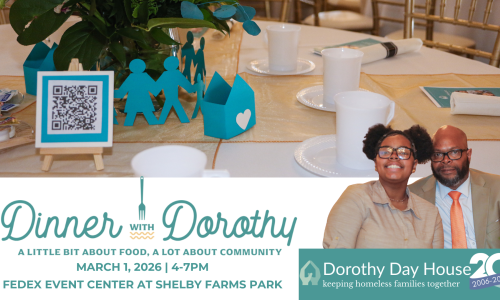 On behalf of Dorothy Day House, we invite you to join us for our 6th Annual Dinner with Dorothy on Sunday, March 1, 2026, at the FedEx Event Center at Shelby Farms—a special evening that officially kicks off our 20th Anniversary celebration.