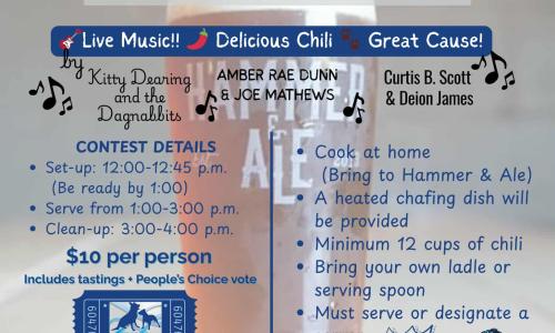 ● Chili may be cooked from home then brought to Hammer and Ale.