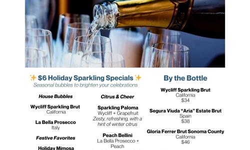 Sip your way into the New Year on the Mississippi River at Terrace at the River Inn, where sweeping river views and fireworks light up the countdown. Enjoy $6 holiday sparkling specials all night, bubbles-by-the-bottle deals, and $8 small plates. No reservations are needed—just come ready to celebrate.