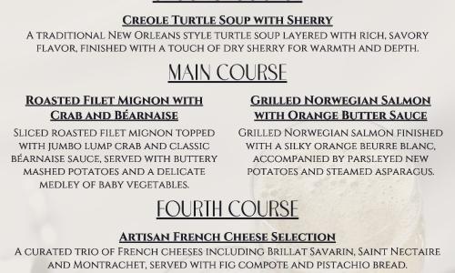 Ring in the New Year with an elegant, old-world-inspired celebration at Paulette’s. Our New Year’s Eve Menu is a multi-course experience inspired by the legendary chef Auguste Escoffier, King of Chefs and Chef of Kings, crafted to feel timeless, indulgent, and unforgettable, and served on Wednesday, December 31, from 5–9 p.m. Guests are invited to continue the evening’s festivities at Terrace at the River Inn for the New Year countdown, featuring river views and fireworks. Reservations are strongly encouraged and can be made via opentable.com.