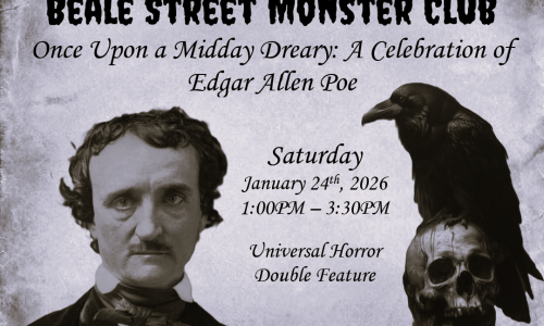 Join Beale Street Monster Club as they start off the new year with a celebration of one of horror's most legendary figures: Edgar Allen Poe. Learn about the tragic life of the man who has haunted the dreams of readers for over a 150 years followed by a Universal Horror double feature of "The Black Cat" (1934) and "The Raven" (1935)!!!