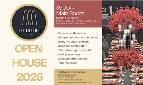 Step inside The Coronet and experience what’s possible. Join us for an immersive open house featuring fully styled mock event setups—from weddings and corporate meetings to baby showers and cocktail parties. Guests will enjoy live entertainment, tastings, photo opportunities, and interactive experiences from some of the region’s top event professionals. Whether you’re planning an upcoming celebration or looking to partner as a vendor, this is an event you don’t want to miss.