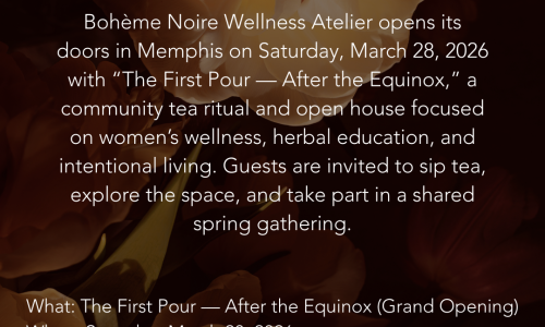 Bohème Noire Wellness Atelier, a new woman-owned herbal wellness space in Memphis, is opening to the public on Saturday, March 28, 2026 with a special spring gathering titled “The First Pour — After the Equinox.”