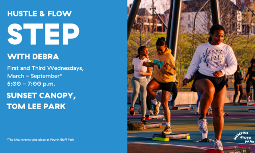 Step up your fitness routine with FREE Step Aerobics at Tom Lee Park. Join instructor Debra on the 1st and 3rd Wednesdays of March - September from 6:00 - 7:00 p.m. under the Sunset Canopy for a fun, high-energy workout.